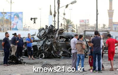 ▲ 이라크 사드르시티의 차량폭탄테러 현장 ⓒAFP이라크 북부의 시아파 지역인 사드르 시티의 한 시장 앞에서 차량폭탄테러로 인한 잔해 옆에서 주민들이 서 있다.