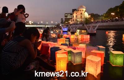 ▲ 일본에서 히로시마 원폭 폭발 70주년 추모식이 열렸다. ⓒAFP지난 1945년 일본 히로시마에서 원자폭탄 폭발로 70만명이 숨진 것에 대한 70주년 추모식이 일본 모토야스강에서 진행되고 있다.