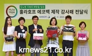 세계적인 헬스케어 기업 사노피(Sanofi) 그룹의 국내 제약사업 부문인 주식회사 사노피-아벤티스 코리아(대표 배경은, 이하 ‘사노피’)는 지난 7일 국내 당뇨병 환자들의 건강한 삶을 응원하기 위해 진행한 ‘훌라호프 에코백(Hula Hope Ecobag) 프로젝트 (이하 프로젝트)’의 참여자들에게 감사패를 전달했다고 밝혔다.