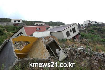 엔젤에서 지질 불안정으로 주택이 붕괴되었다.