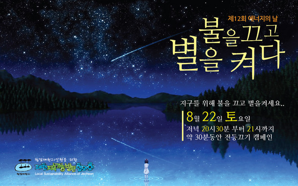 충북 제천지속가능발전협의회는 제천시와 초록시범마을 협약기관과 오는 8월 22일(토) 제12회 에너지의 날을 기념해 ‘불을 끄고 별을 켜다’라는 슬로건으로 소등 끄기 홍보에 나섰다.