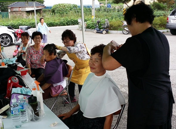 이·미용 봉사팀은 어르신들의 머리를 잘라주고 염색까지 해드렸다.
