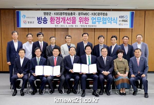 영광군(군수 김준성)은 8. 31(월) 군청 영상회의실에서 이개호 국회의원과 미래창조과학부 관계자 등 20여명이 참석한 가운데 KBS 광주방송총국(홍기섭 총국장), 광주 MBC(최영준 사장), KBC 광주방송(양철훈 사장)과 방송음영지역 해소를 위한 업무협약을 체결하였다. 이번 업무협약은 영광읍 지역의 난시청 문제를 해결하기 위하여 영광군과 방송사간 원활한 협력을 다지기 위하여 마련되었다.