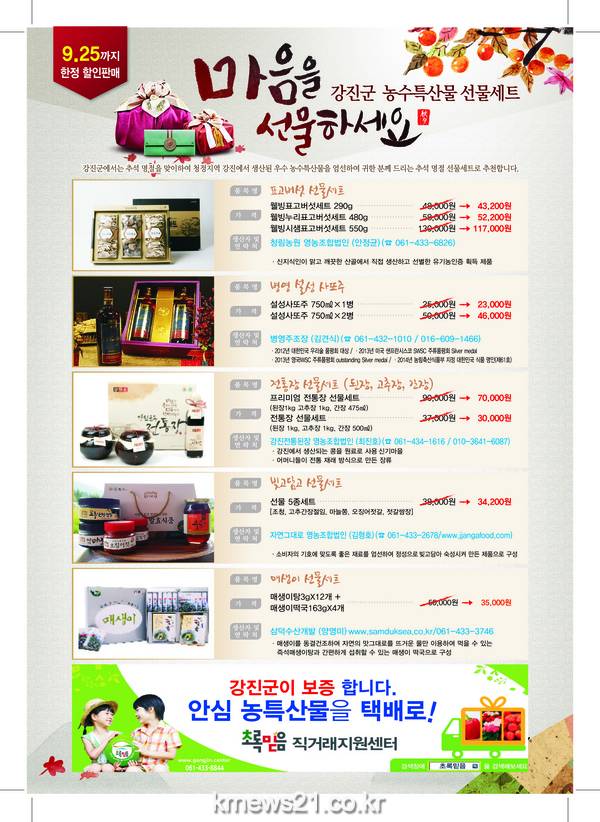 전남 강진군 초록믿음직거래지원센터가 최대소비처인 수도권 소비자와 기관, 단체 등을 대상으로 추석명절대비 전방위적 마케팅을 실시한다.