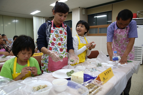 한국 문화가 낯선 결혼 이주여성과 다문화 가정의 어린이들이 가족들과 함께 송편을 만들면서 한가위 명절의 의미를 되새겨보는 시간을 가졌다.