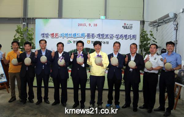 영암군이 멜론 지역브랜드화를 위해 개발·보급 성과 평가회를 가졌다.