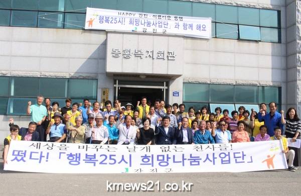한편, 행복25시 희망나눔사업단은‘Happy 강진·아름다운 동행’이라는 슬로건 아래 80여명의 봉사단이 2013년 3월 활동을 시작했다. 복지서비스 접근성이 상대적으로 떨어지는 오지마을을 찾아가 이․ 미용, 목욕봉사, 밑반찬배달, 소규모 수리, 양방 진료, 이동세탁, 도배 장판 등 생활에 필요한 25여개 분야의 봉사를 진행하여 강진군의 자원봉사활성화에 선봉장 역할을 하고 있다.