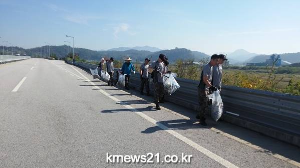 자원봉사단과 6탄약창 장병 30여명은 지난 22일부터 23일까지 지역내 주요 도로변의 쓰레기를 수거하고 경관을 해치는 잡목을 제거하는 등 환경 정화 활동을 실시했다.