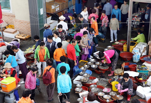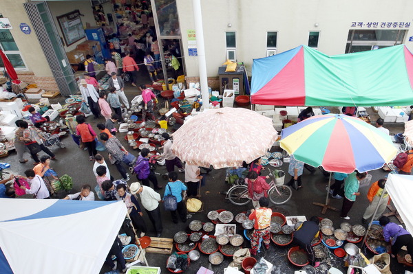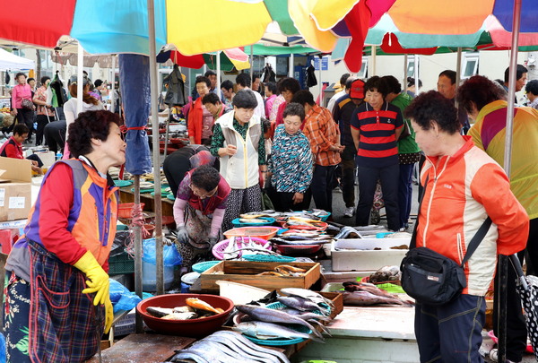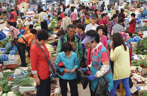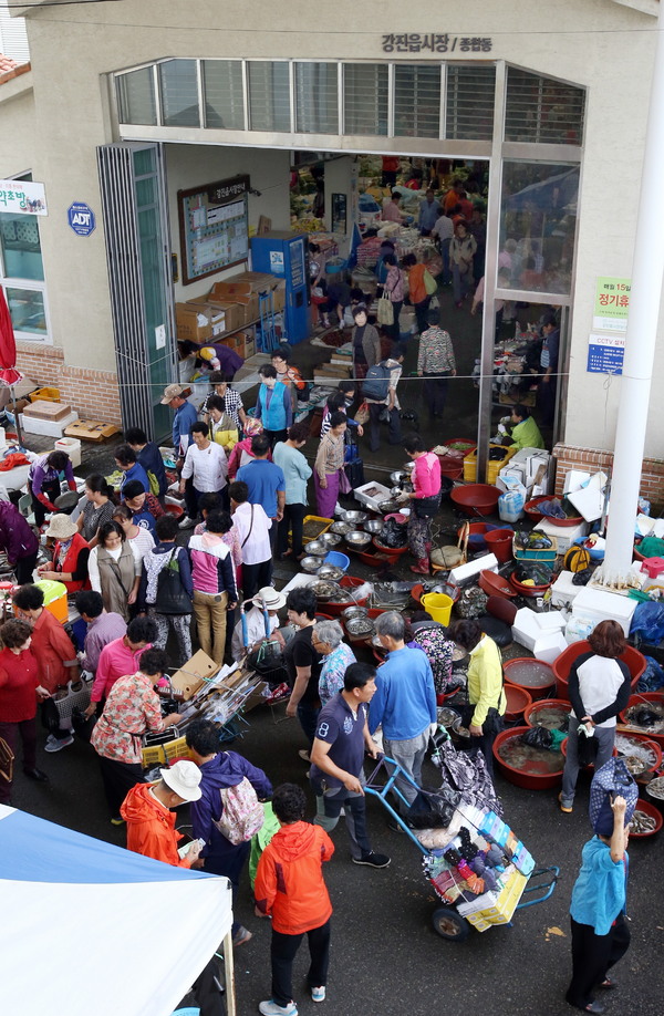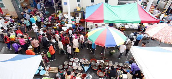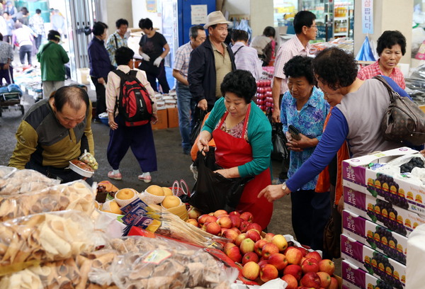 민족 대명절 한가위가 사흘 앞으로 다가온 지난 24일 추석 대목을 맞은 전남 강진군 강진읍 5일 장이 제수용품을 사러 나온 인파들로 북적이고 있다.