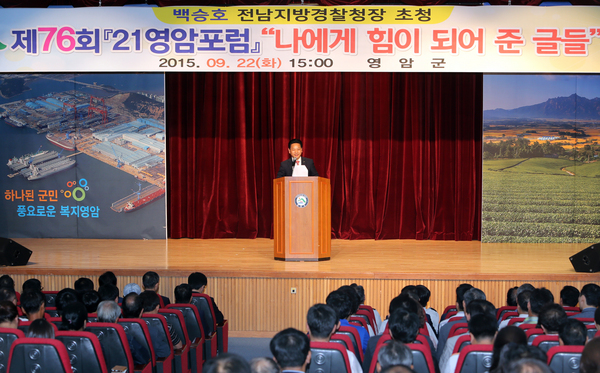 영암군에서 군민의 교양강좌 요구에 부응하고자 시행하고 있는 제76회 「21 영암포럼」에 참가하고자 하는 군민들과 기관사회단체장 등 500여명이 청소년 수련관을 찾은 것.