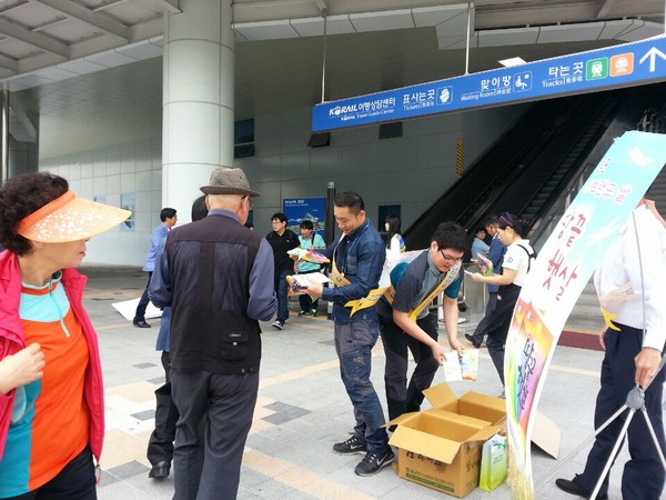 추석을 앞두고 대규모 귀성객 이동이 시작된 가운데 해남군(군수 박철환)은 유동인구가 많은 대도시 버스터미널 등지에서 해남쌀 홍보활동을 펼쳤다.