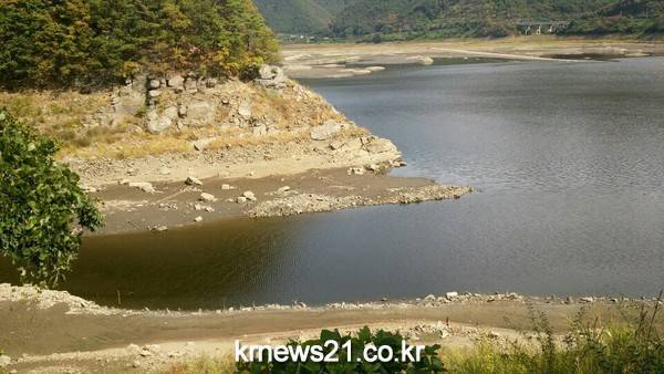 충남 서북부지역 식수원인 보령댐 상류가 계속된 가뭄으로 바닥을 드러냈다.