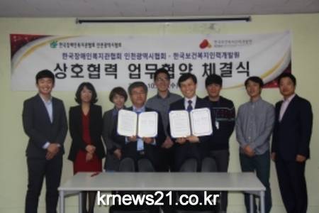 한국보건복지인력개발원 경인사회복무교육센터(센터장 황운성, 이하 ‘경인센터’)가 14일 한국장애인복지관 인천광역시협회(회장 한명섭)와 상호협력 강화를 위한 MOU(양해각서)를 체결했다.