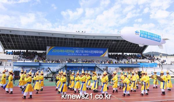 여수시에 따르면 2015여수시민의날 행사가 15일 진남경기장 등 시내일원에서 기념식과 함께 시작을 알렸다. 육상.배구 등 13개 종목별 읍면동 대항전으로 치러지는 제17회 여수시민체육대회도 16일까지 종목별 경기장에 진행된다.