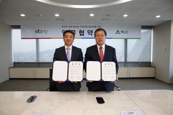 군은 지난 10월 23일 박철환 해남군수와 이베이코리아 변광윤 대표이사 등이 참석한 가운데 강남 파이낸스센터 이베이실에서 ‘해남 농수특산물 온라인 판로확보를 위한 업무 협약식’을 가졌다.