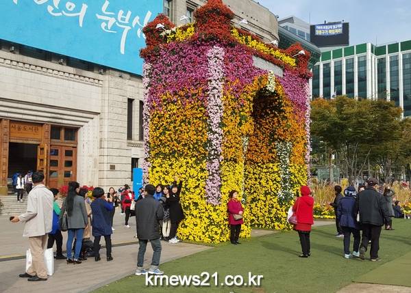 서울광장 곳곳에는 국화로 장식된 정자 등을 마련해 시민들이 편안하게 국화향기를 맡으면 쉴 수 있는 공간도 마련했다.