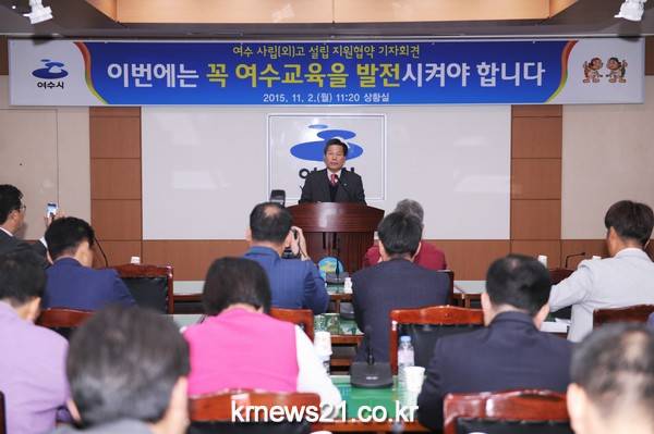 여수시와 사립외고설립추진위원회는 여수국가산단 기업들의 명문고 설립에 대한 지원약속을 토대로 시민들이 직접 참여하는 논의의 장을 마련한다.