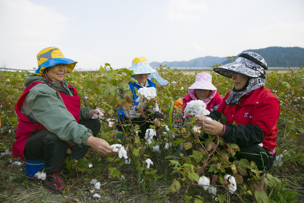 요즘은 거의 재배되지 않는 목화가 하얀 솜 뭉치를 매달고 있는 이색 풍경이 오가는 이들의 눈길을 사로잡고 있다.