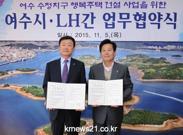 여수시(시장 주철현)는 5일 행복주택사업 공동사업시행자인 LH한국토지주택공사와 수정동 167-1번지(구 시민아파트) 일원 약 5,300㎡부지에 200세대 규모의 행복주택 건설하기 위한 기본협약을 체결했다.
