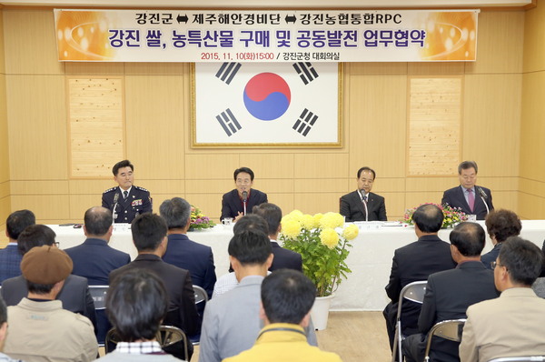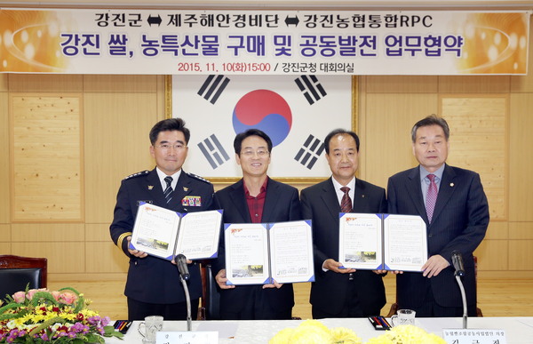 지난 10일 강진군과 제주해안경비단, 농협쌀조합공동사업법인이 강진군청 대회의실에서 관내 농협장들과 농업인단체 등 100여명이 참석한 가운데 강진쌀·농특산물의 구매와 공동발전을 위한 업무협약을 체결했다.