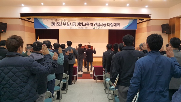 교육은 견실시공 결의문 낭독, 부실시공 예방을 위한 외부강사 특강, 청렴 동영상 시청 등 다양한 내용으로 이루어졌다.