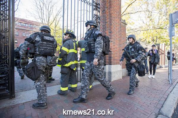 하버드대 캠퍼스에는 경찰이 출동했고, 본관 앞 교정 주변으로는 출입 통제가 된 것으로 알려졌다.폭파 위협이 제기된 4개 건물에서는 수색 작업이 이뤄졌다.