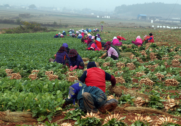 서늘한 기온에서 잘 자라 지금이 수확 최적기인 총각무는 전라남도 지역이 주산지이다.