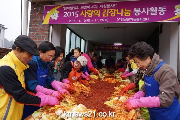 임실군자원봉사센터(소장 박재만)는 지난 19일부터 21일까지 3일간에 걸쳐 다문화가정 쉼터 에바다회관에서 “2015 사랑의 김장나눔 봉사활동”을 실시했다.