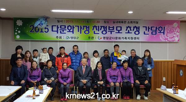 영암군(군수 전동평) 다문화가족지원센터는 “2015년 다문화가정 친정부모 초청 행사” 일환으로 다문화가족 친정부모 초청 간담회를 지난 14일 영암군실내체육관 소회의실에서 개최하였다.