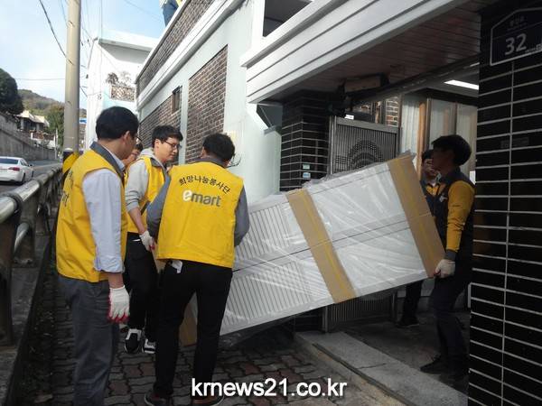 이날 봉사활동에는 40명의 이마트 여수점 직원들이 참여했으며, 저소득 다자녀 가구와 중증장애인 가구 등 2세대에 각각 150만원씩 300만원을 들여 가스레인지와 전등을 교체해 주고 냉장고와 TV, 책상, 수납장 등 생필품도 함께 전달해 주었다.