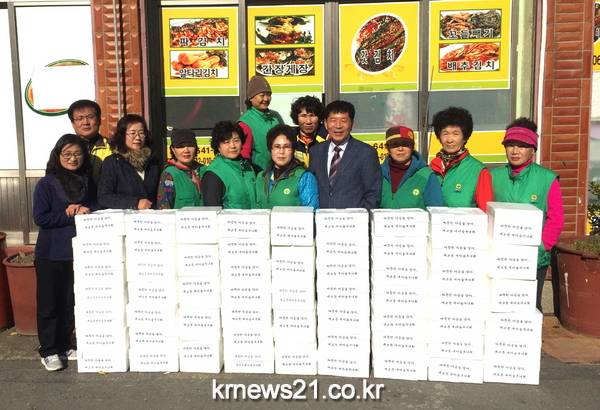 여수시 대교동 새마을부녀회에서는 지난 26일 회원 15명이 함께 김장을 담가 독거노인 세대와 장애인․다문화 가정, 경로당 등 60여 곳에 김치를 전달해 주었다.