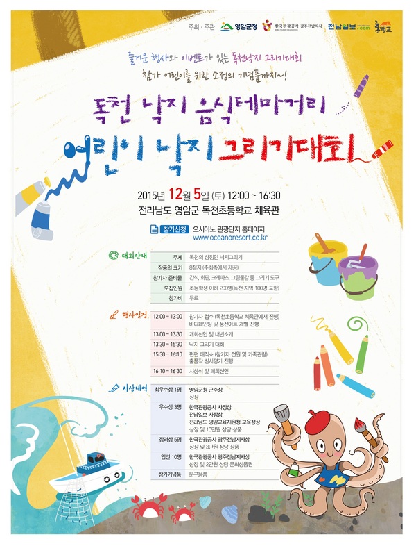 영암군이 주최하고 전남일보와 한국관광공사 광주전남지사가 공동 주관하는 어린이 특화음식(낙지) 그리기 대회는 독천을 대표하는 낙지에 대한 이미지 제고와 독천 낙지 음식테마 거리 홍보의 일환으로 마련되었으며, 영암 지역을 비롯한 광주․전남 지역 초등학생이면 누구나 참여할 수 있다.