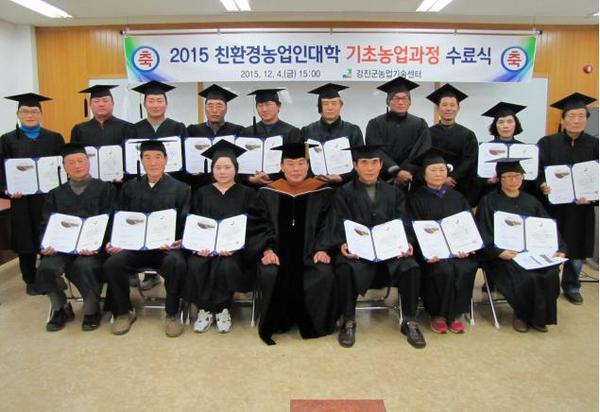 한편, 강진군친환경농업인대학은 변화하는 시대 흐름에 대응하여 농산물 경쟁력을 향상시키고 농업의 혁신과 변화를 선도할 농촌의 핵심 인재를 양성하고자 2012년에 설립한 농업인 대학으로 2016년에도 신청을 접수 받아 운영 할 계획이다.