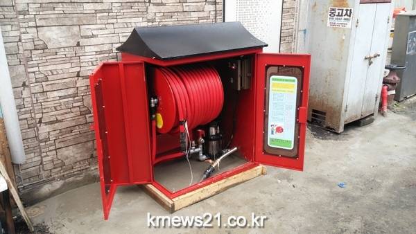 이번에 설치 된 호스릴소화전은 화재가 발생하였을 때 소화전에 연결된 호스릴을 사용하여 소방대가 현장에 도착하기 전에 인근 주민이나 상인들이 초기 화재를 진화할 수 있는 장치로, 화재발생 시 대형화재로의 확대를 사전에 예방할 수 있을 것으로 기대된다.