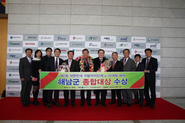 해남군(군수 박철환)이 온라인 농수특산물 홍보 및 판매를 통한 지역경제 활성화 우수사례를 평가하는 2015 대한민국 지방자치단체 e-마케팅 페어에서 최고상인 종합대상을 수상했다.