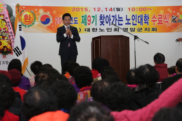 영암군(군수 전동평)은 지난 1일부터 영암읍을 시작으로 노인대학생 1,620명을 대상으로 15일까지 11개 읍면에서 제9기 찾아가는 노인대학 수료식을 개최 하였다.
