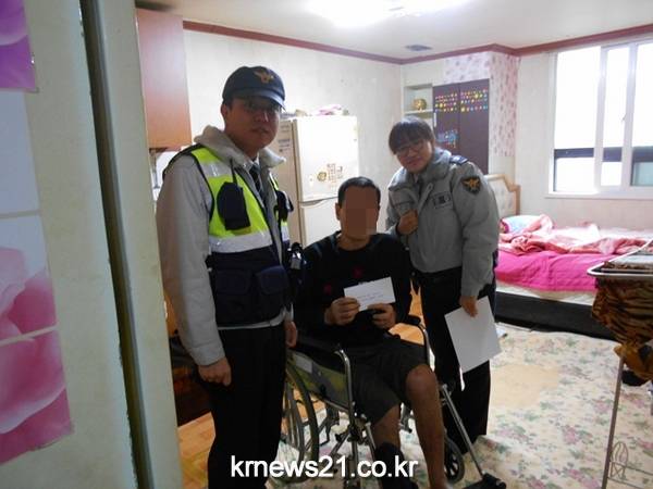 죽산파출소(소장 : 경감 박종광)는 ’15. 12. 16(월) 12:00경 파출소장, 순찰2팀장 김강석, 순찰팀원 임성철과 류명기, 관리반 김나연 등 5명은 연말연시를 맞아 우리사회의 관심이 필요한 이웃들에게 훈훈한 사랑의 온정을 전달키 위해 안성시 삼죽면 소재 이00댁에 방문하여 위문금 25만원을 전달하였다.