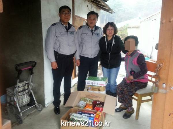 안성경찰서(서장 서상귀)는 ’15. 12. 15(화) 14:00 일죽파출소장 양강열 등 직원 5명은 연말연시 맞아 우리 사회의 관심이 필요한 이웃들에게 훈훈한 사랑의 온정을 전달키 위해 일죽면 주천리 거주 이OO, 화곡리 거주 이OO, 월정리 김OO 독거노인을 방문하여 도합 25만원 상당 위문품을 전달하였다.