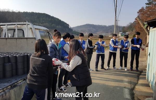 특히 이 연탄배달 봉사는 봉사동아리인 날개봉사단(지도교사 최병준)이 17년째 이어오고 있는 전통이다.