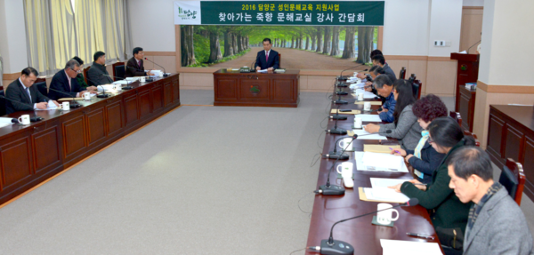 평생학습도시 담양군이 지역민들의 배움에 대한 욕구를 해갈하고 정부 3.0 서비스형 지방정부를 실현하고자 지난 11일 군청 영상회의실에서 ‘찾아가는 죽향 문해교실’ 참여 강사 21명을 초청해 간담회를 가졌다고 밝혔다.