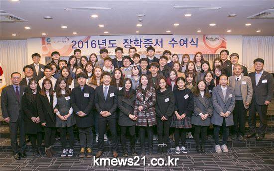 대상문화재단은 18일 서울 세종문화회관 세종홀에서 ‘2016년도 장학증서 수여식’을 갖고 국내 대학생 60명과 동남아유학생 10명, 청소년가장 및 기초생활 수급권자 자녀 중고생 300명 등 총 370명에게 1년간 총 9억5000만원의 장학금을 지원한다.