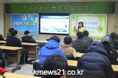 김포시는 오는 23일부터 5월 19일까지 김포시청 민방위 재난실전훈련센터에서 민방위편성 1~4년차 대원 9,500여명을 대상으로 2016년 기본교육을 실시한다고 밝혔다. 또한 총선과 관련해 3월 31일부터 4월 13일까지 교육금지 기간이라고 덧붙이며 교육 참석에 주의를 당부했다.