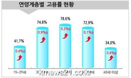 통계청은 청년실업이 사회 문제로 부상하면서 연령별 고용률에 대한 관심이 높아지고 있는 점을 고려했다 면서 앞으로도 계속 관련 통계의 요약본을 선보일 계획 이라고 말했다.