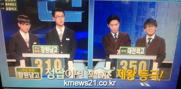 장학퀴즈 제 왕전에서 창원남고가 360점으로 대역전으로 제왕우승을 하였다