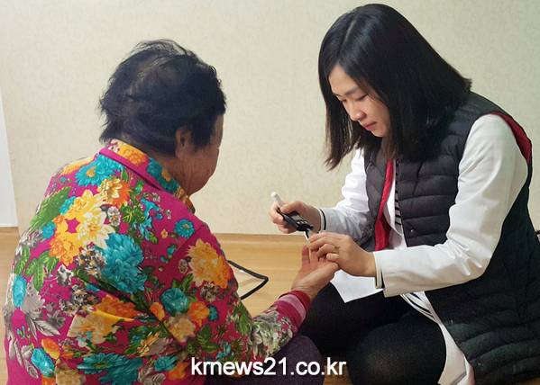 보건소에 등록된 당뇨 환자를 대상으로 미리 방문일정을 알려 경로당과 가정을 방문해 혈압, 혈당을 측정하고 있다.