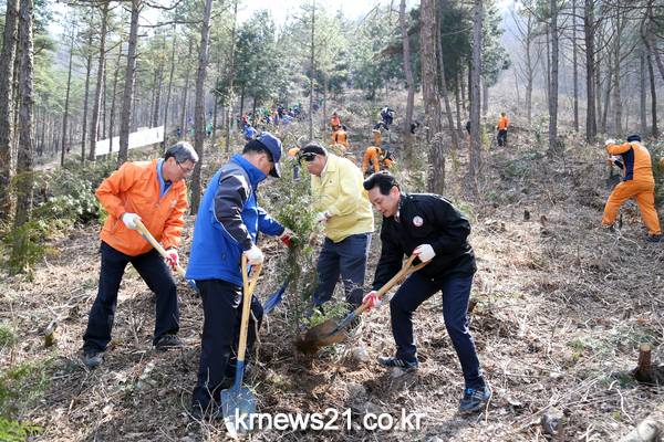 이날 행사에서는 6ha의 면적에 편백, 동백, 산딸 등 6,000본을 식재하고, 나무심기 행사에 참가한 사람들에게 감나무, 매실나무, 철쭉 등 3,000본을 나눠줘 집주변 생활권 자투리 땅에 식재토록 했다.