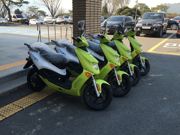 ▲ 전기이륜차 모습청양군은 지구 기후변화와 수송부분 온실가스 감축에 대처하고 청정청양의 대기환경을 지켜나가고자 무공해 전기이륜차 보급에 앞장서고 있다.