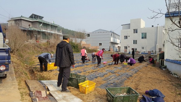 면은 지난 21일부터 31일까지 면사무소 옆 중추리 523-15번지 757㎡ 밭을 이용해 노인 일자리사업 인력 20여명을 활용 둥근마 식재를 완료했다.