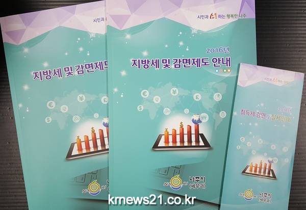 나주시에서는 시민들이 어렵게만 생각하는 지방세에 대한 이해를 돕기 위해 지방세 감면제도 안내 책자 및 리플릿을 제작, 시민중심체감행정 시책을 추진하여 큰 관심을 끌고 있다.