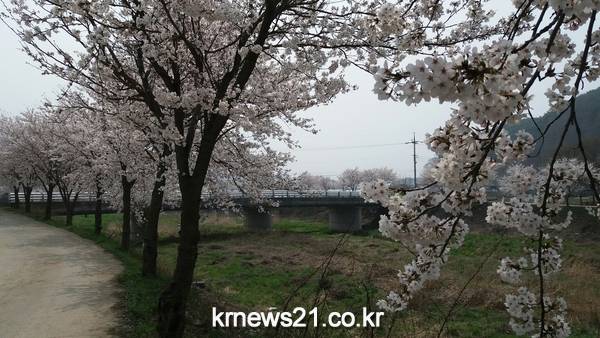 ▲ 운곡면 벚꽃길 모습청양군 운곡면(면장 윤주원) 신양천 4㎞ 구간(모곡리∼영양리)에 벚꽃이 만개해 면민들과 청양을 찾는 관광객들의 눈길을 사로잡고 있다.